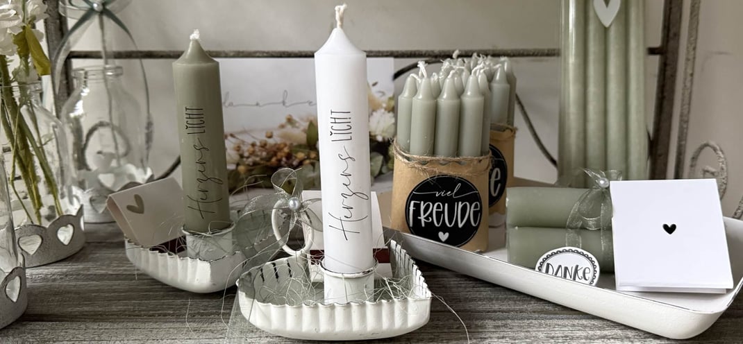 mit diesen aussergewöhnlichen "Kerzenstickern" , gedruckt auf eine hochwertige Wasserschiebefolie, lassen sich Oberflächen, die man nicht bestempeln kann, "bekleben". man zieht die Folie im nassen Zustand auf die gewünschte Oberfläche . (ANLEITUNG Wasserschiebefolie) - passende Stab- und Baumkerzen
