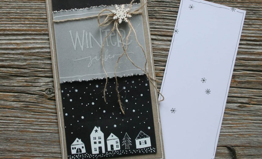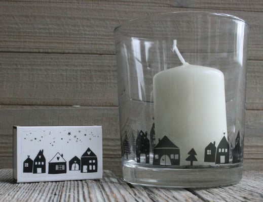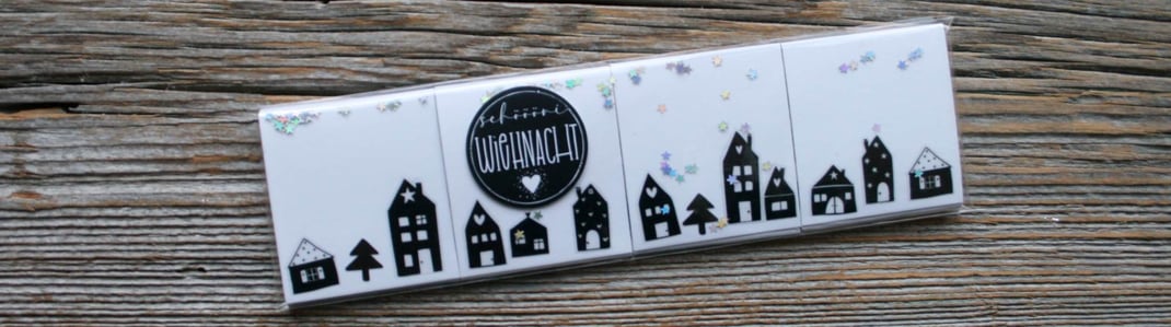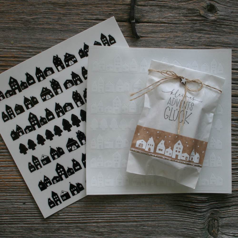 klitzekleine Häuschen in schwarz oder weiss und dazu passende Tannenbäumchen... sie kleben auf Spiegel, Gläser, Geschenkpapier..... einfach üüüüüüüüüüüüberall!