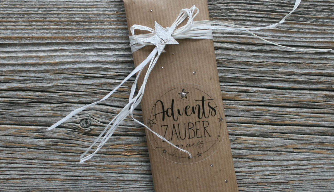 12 Aufkleber (4 cm) mit adventlichen Texten, gedruckt auf weisse PVC freie Folie