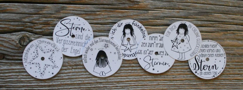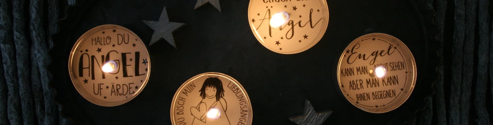 Set mit 7 kleinen Engels-Botschaften für Teelichter - ohne Kerzen