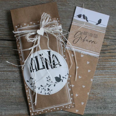 die Auswahl an Geschenkanhängern ist gross. es gibt sie in weiss oder braun und sie machen jedes Geschenk noch persönlicher.